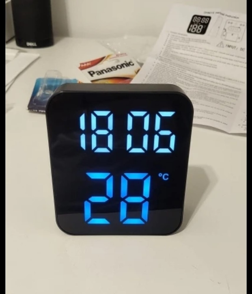 Настольные часы с будильником и датчиком темперы, видно в темноте.