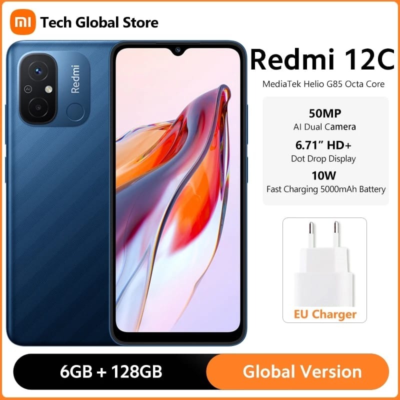 Смартфон Xiaomi Redmi 12C, Восьмиядерный MediaTek Helio G85, экран 6,71 дюйма HD +, двойная камера 50 МП, аккумулятор 5000 мАч