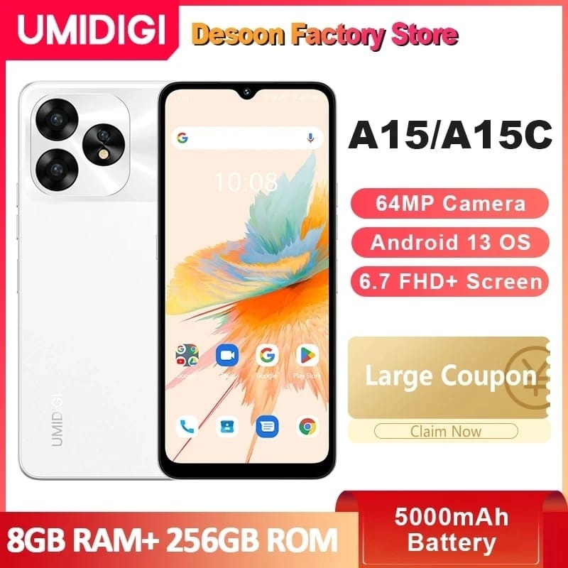 Смартфон UMIDIGI A15, A15C, 6,7 дюйма, FHD +, Android 13, 8 + 256 ГБ, 64 мп, 5000 мАч, NFC